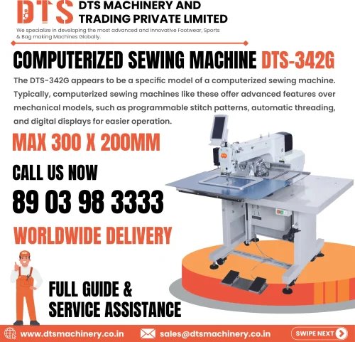 The Computerized Sewing Machine DTS-342G is a state-of-the-art industrial sewing machine designed for high-speed, precision stitching with advanced automation features. Engineered for efficiency, consistency, and ease of operation, this machine is ideal for garment manufacturing, upholstery, and technical textiles. With its computerized control system, the DTS-342G ensures seamless operation, offering pre-programmed stitching patterns, automated adjustments, and superior stitch quality for a wide range of fabrics, from lightweight materials to heavy-duty textiles. Equipped with a high-speed motor, the DTS-342G enhances productivity while maintaining stitch accuracy and durability. Its touchscreen interface provides intuitive navigation, allowing users to customize stitch settings, adjust tension, and select stitch patterns effortlessly. The automatic thread trimming and needle positioning features further streamline workflow, reducing manual effort and production time.